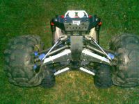 Papierovú šablónu som vystrihol, naohýbal vodiacej plochy okolo ramien a priložil na kontrolu. Šablónu som potom obkreslil na hliníkový plech, vystrihol, vo zveráku naohýbal. Opäť som priložil aby som videl kde lyžina nesedí, aby som ju mohol přiohnout podľa potreby. Na vonkajšej strane kde sa do ramien skrutkujú guľové čapy zavesenia ramenov som odstrihol kúsky lyžiny tak, aby sa lyžina vyhla profilom ramena, ktoré v týchto miestach sú.